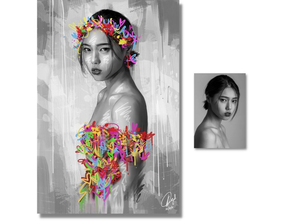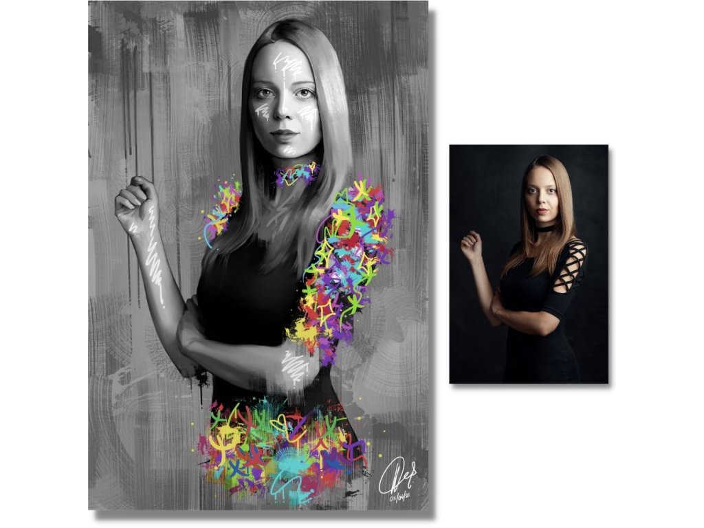 Felejtse el a hagyományos portréfestészetet, és fogadja a lehetőséget, hogy az Ön által megörökíteni kívánt személyt egy teljesen új, rendkívül kreatív és merész módon hozhatja vászonra.