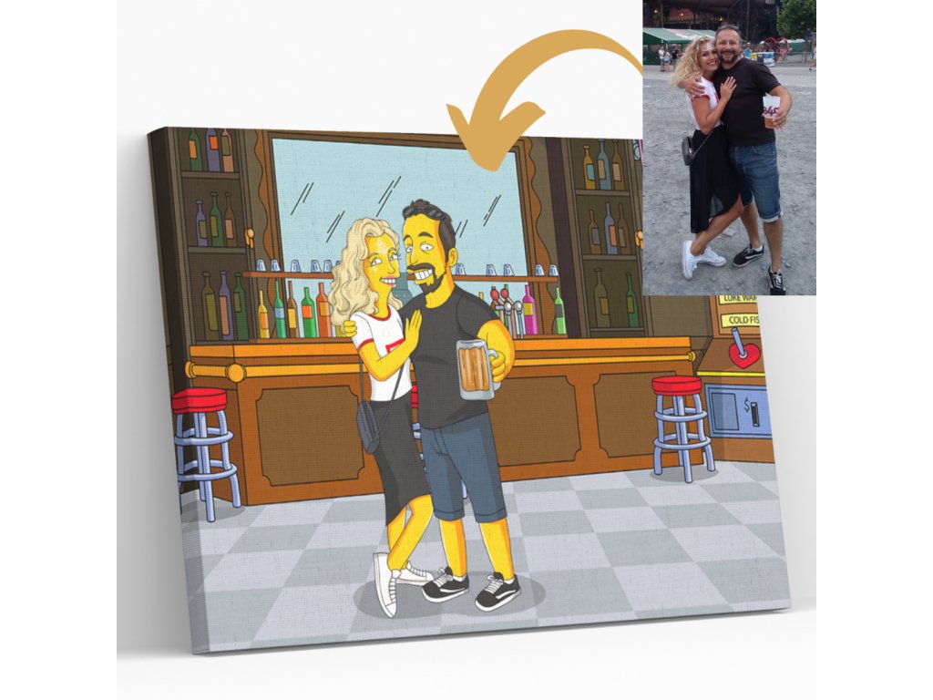 Töltsön el egy felejthetetlen pillanatot a kedvenc Springfieldi bár stílusában a kézzel festett portréval. Merüljön el az ikonikus animált bár környezetében, ahol minden látogatás jó szórakozást ígér. Illusztrációinkkal törzsvendéggé válhat. Ez a Simpson stílusú portré nem csak a csoportképet dobja fel, de egyedi elemmel gazdagítja otthonát, amely emlékeztetni fogja a vidám pillanatokra. Egy Simpson stílusú ajándék remek módja az emlékek felfrissítésének.