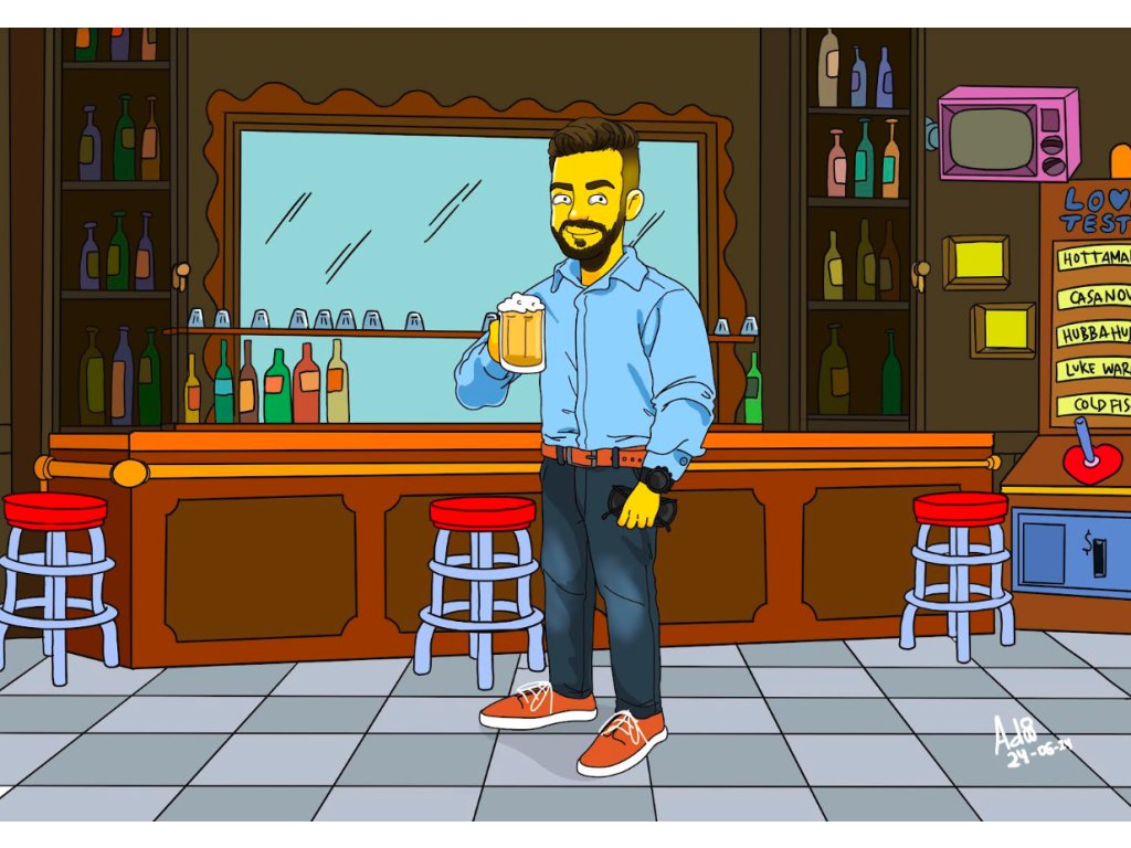 Simpson stílus Bár - kézzel festett karikatúra fénykép alapján