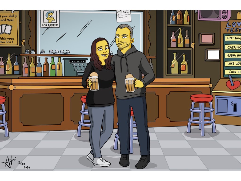 Töltsön el egy felejthetetlen pillanatot a kedvenc Springfieldi bár stílusában a kézzel festett portréval. Merüljön el az ikonikus animált bár környezetében, ahol minden látogatás jó szórakozást ígér. Illusztrációinkkal törzsvendéggé válhat. Ez a Simpson stílusú portré nem csak a csoportképet dobja fel, de egyedi elemmel gazdagítja otthonát, amely emlékeztetni fogja a vidám pillanatokra. Egy Simpson stílusú ajándék remek módja az emlékek felfrissítésének.